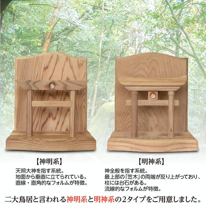 - 本品はコンパクト・スタンダードタイプともに最小スペースで場所を選ばず、ご自宅やオフィス、店舗など、綺麗にスッキリと御札や御朱印帳をお祀りできます。シンプルでモダンな佇まいは和洋室どちらにも馴染みます。(イメージは明神鳥居)